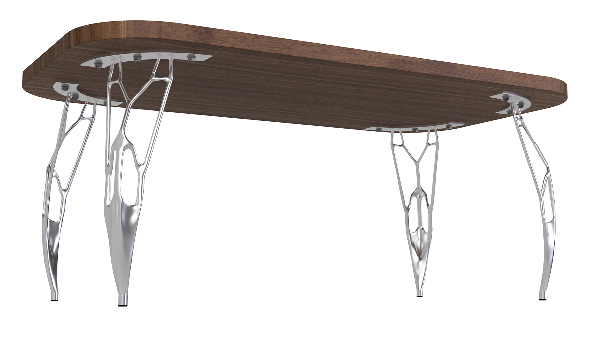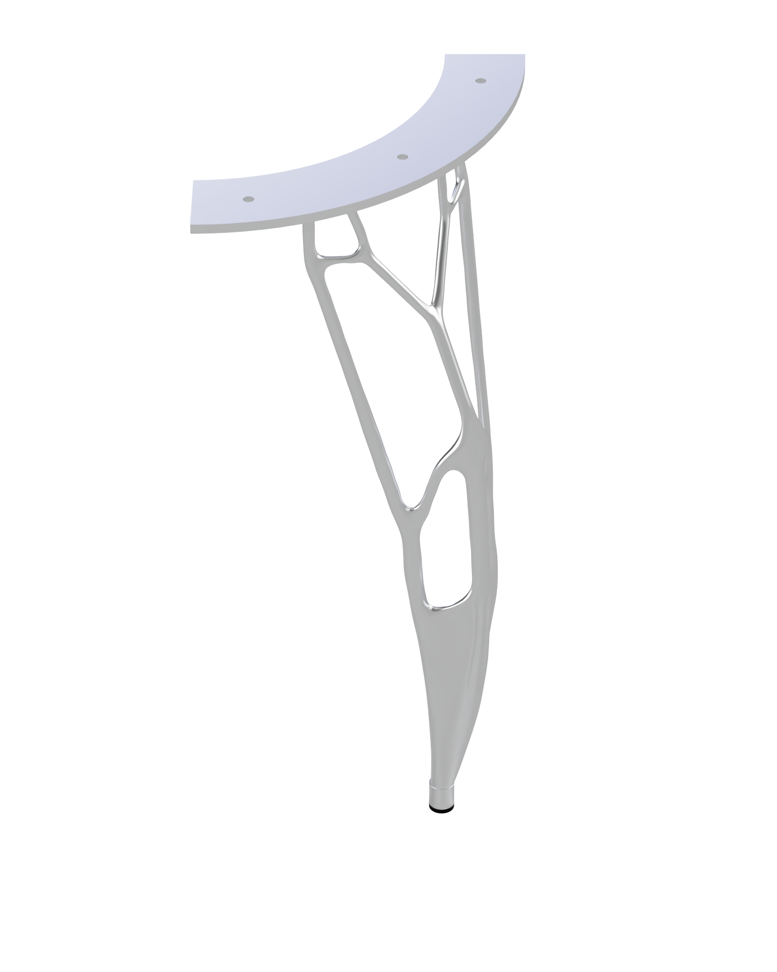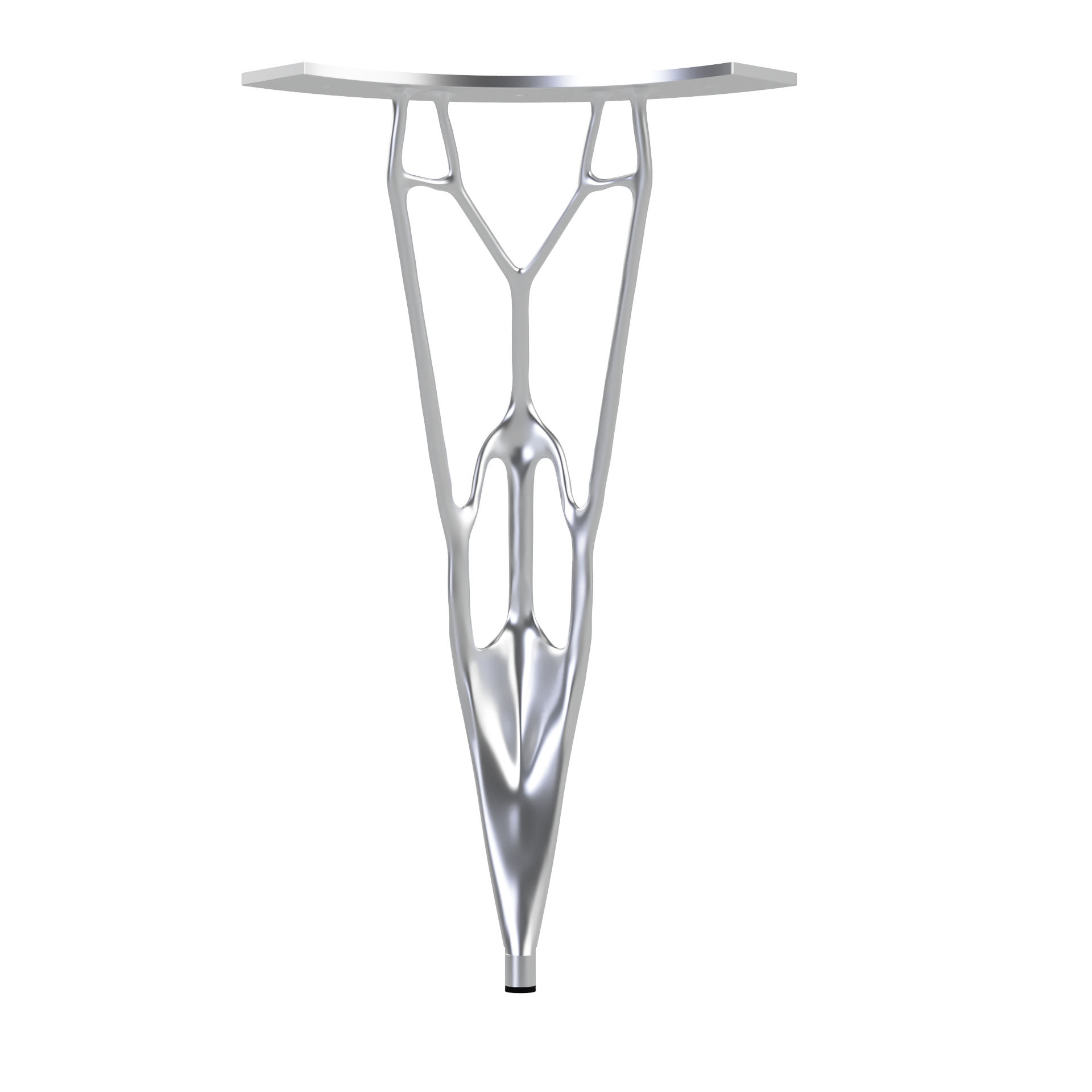 A lightweight, structurally optimized table leg created using generative design, blending organic aesthetics with engineering precision, finished in polished aluminium.