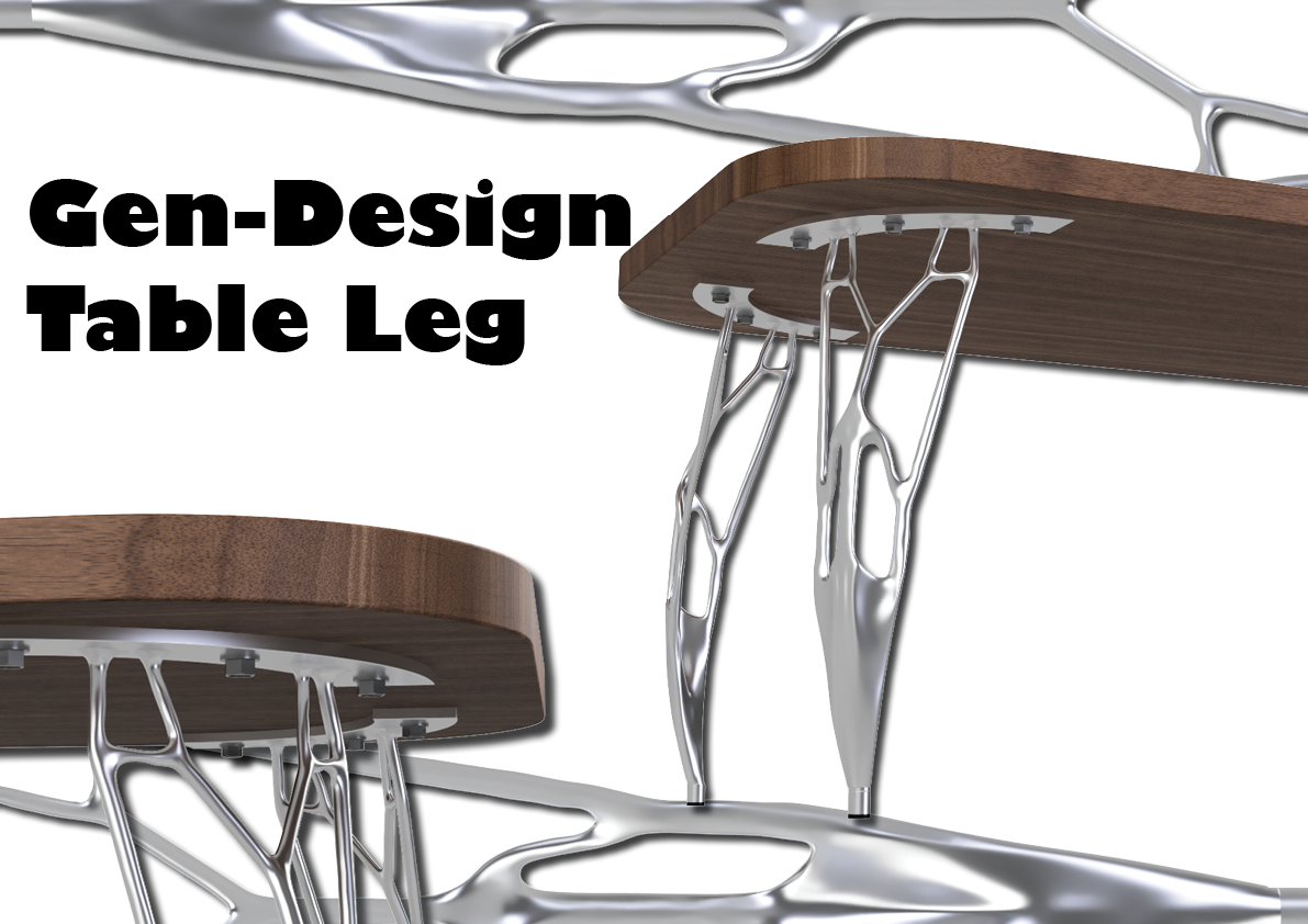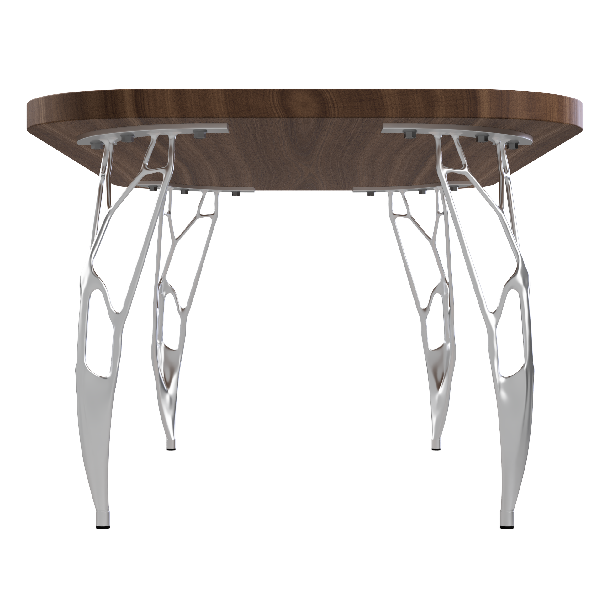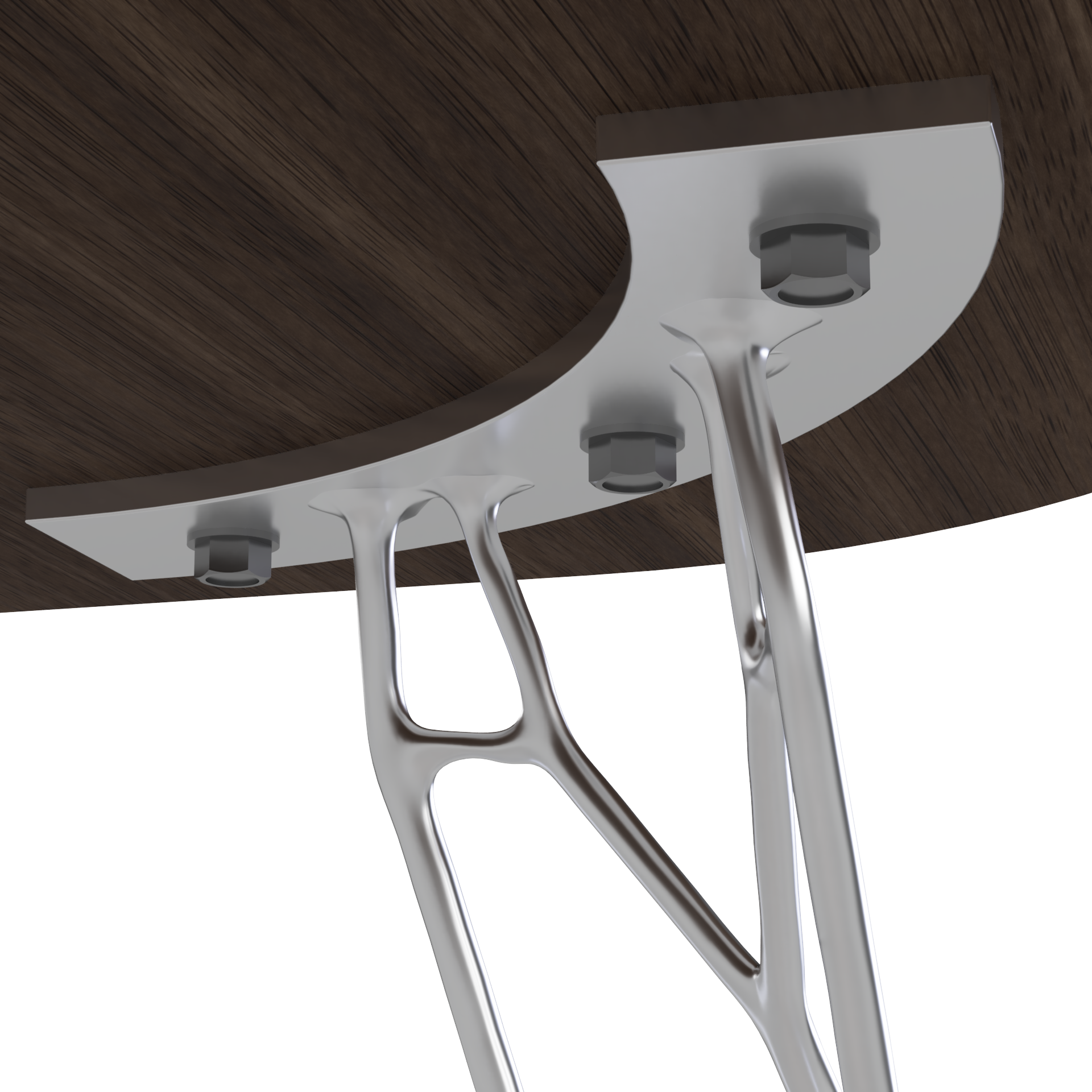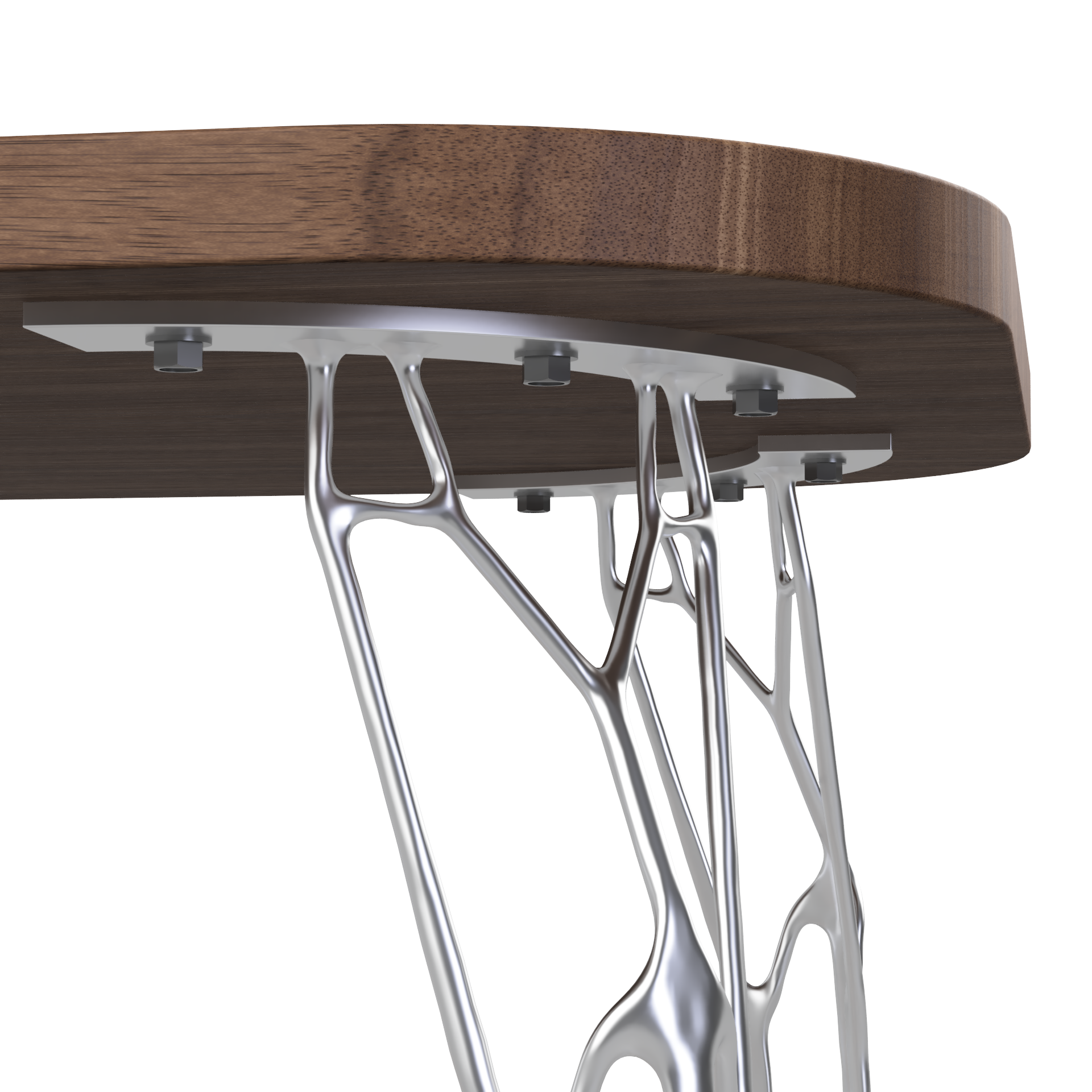 A lightweight, structurally optimized table leg created using generative design, blending organic aesthetics with engineering precision, finished in polished aluminium.